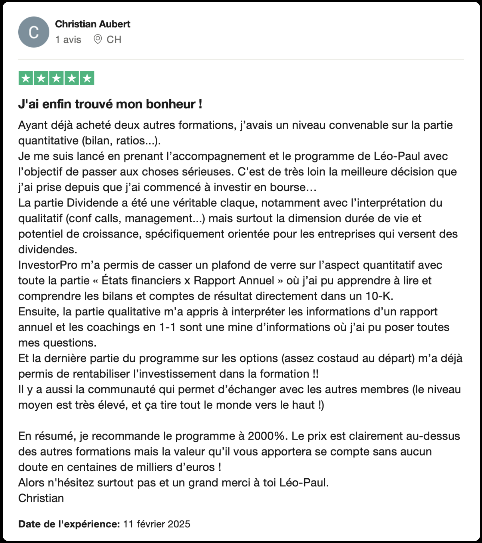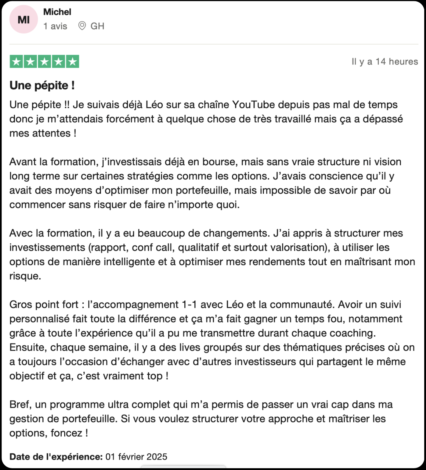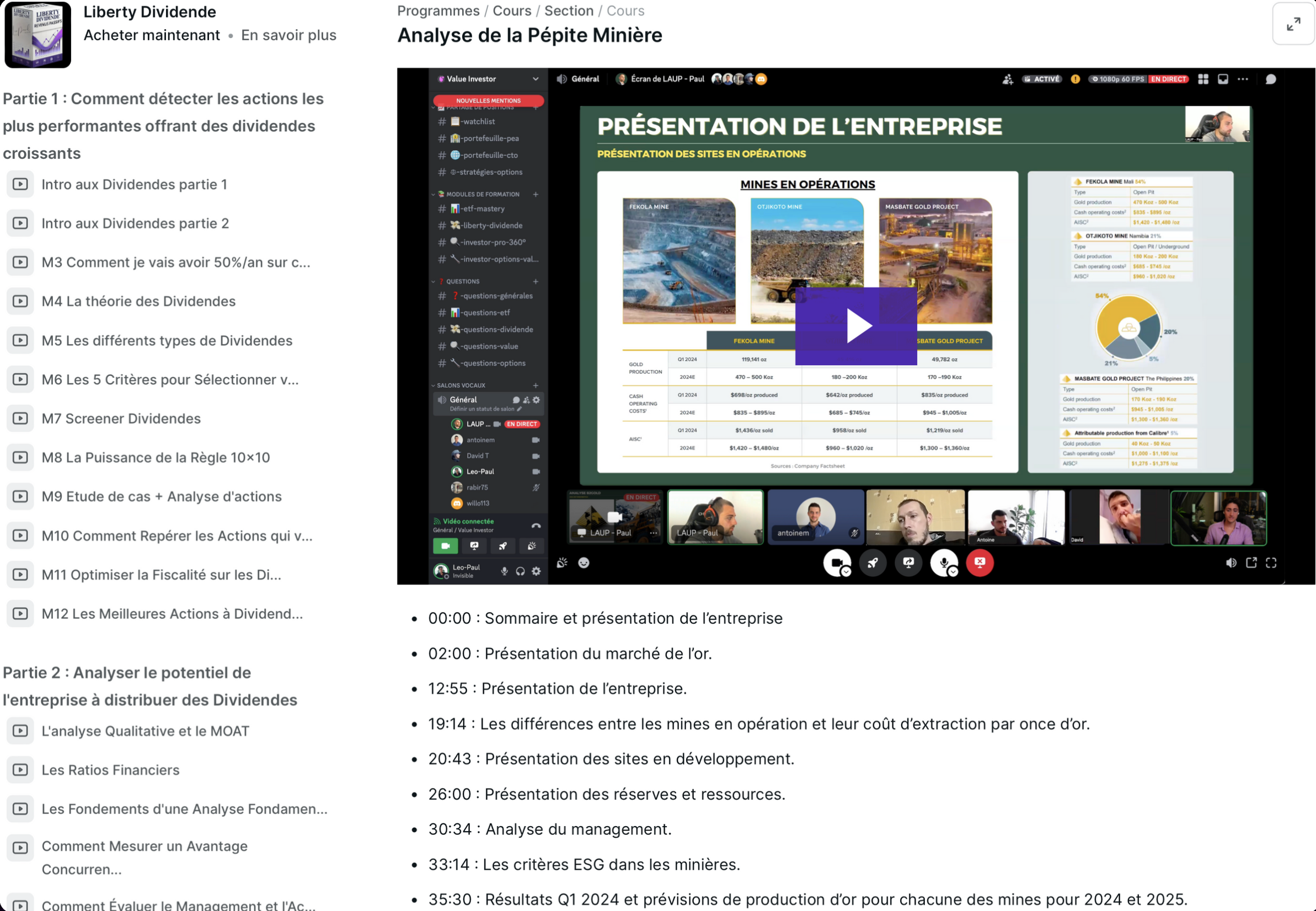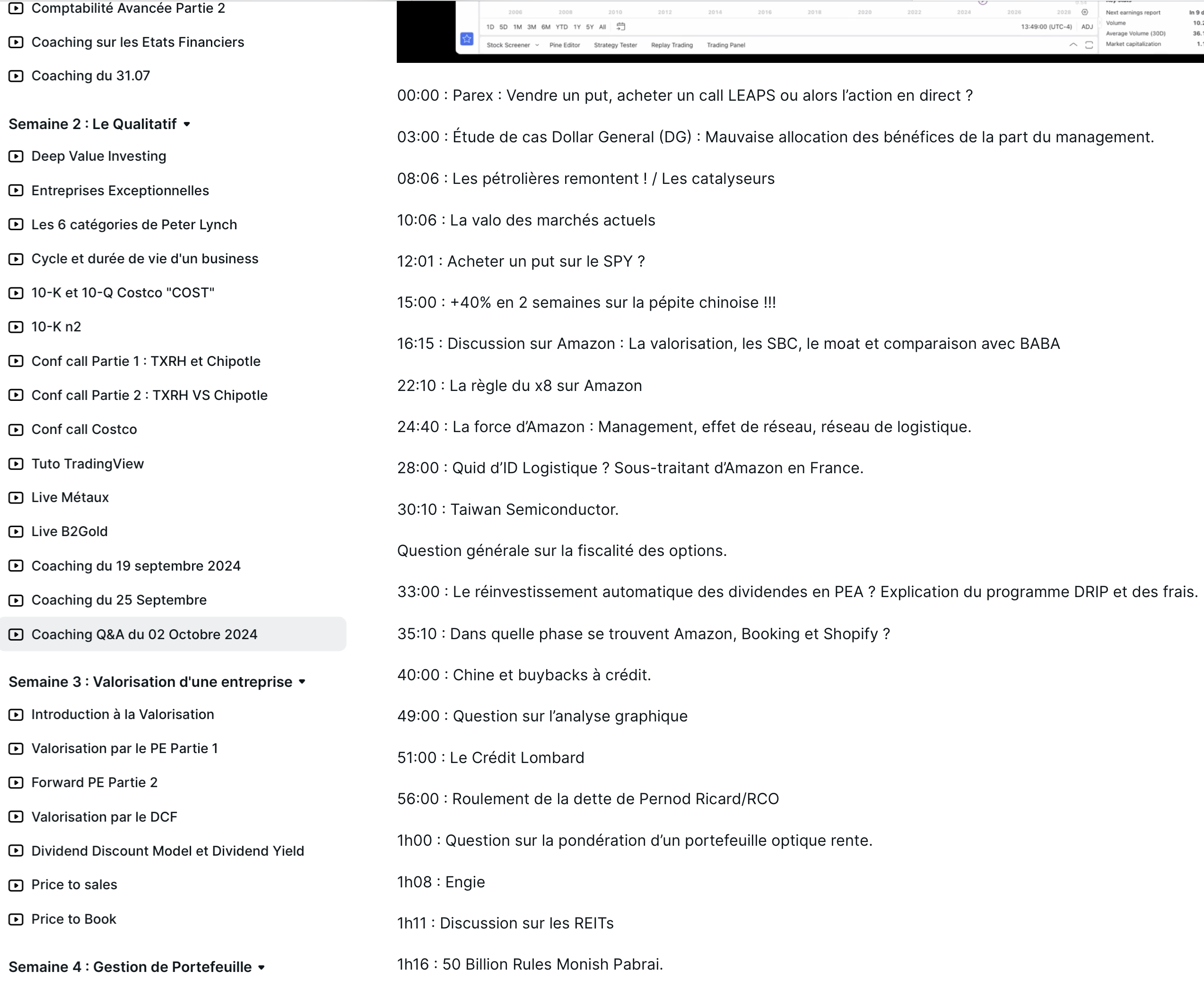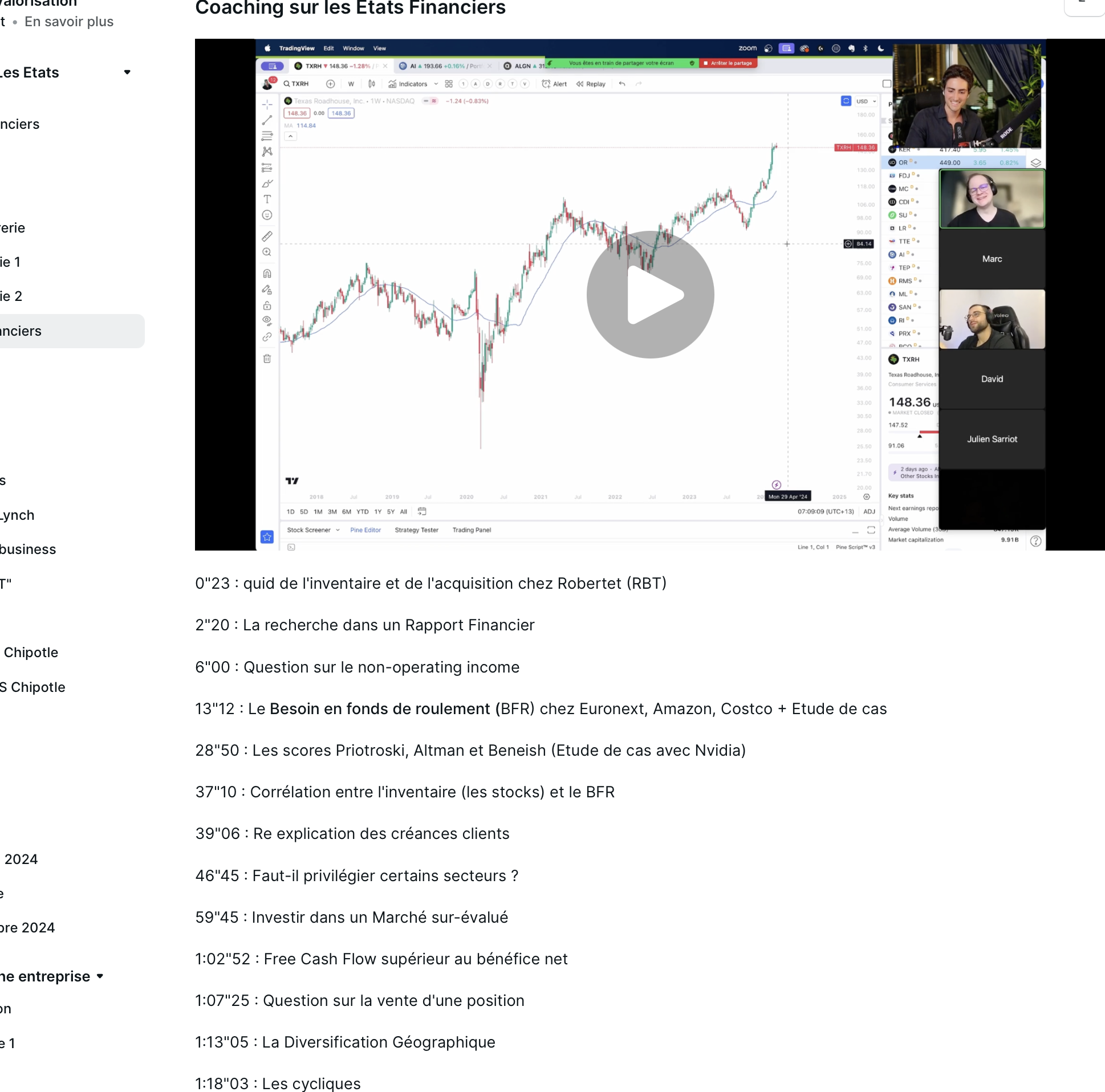 Coaching groupé 2 fois par semaine sur un thème en lien avec les programmes (options, dividendes, rapport annuel, comptabilité...).