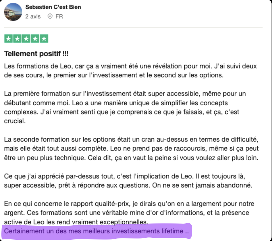 Accompagnement en one-to-one avec moi pendant 90 jours. Là, l'idée est de parler de votre stratégie, de vos positions, etc...